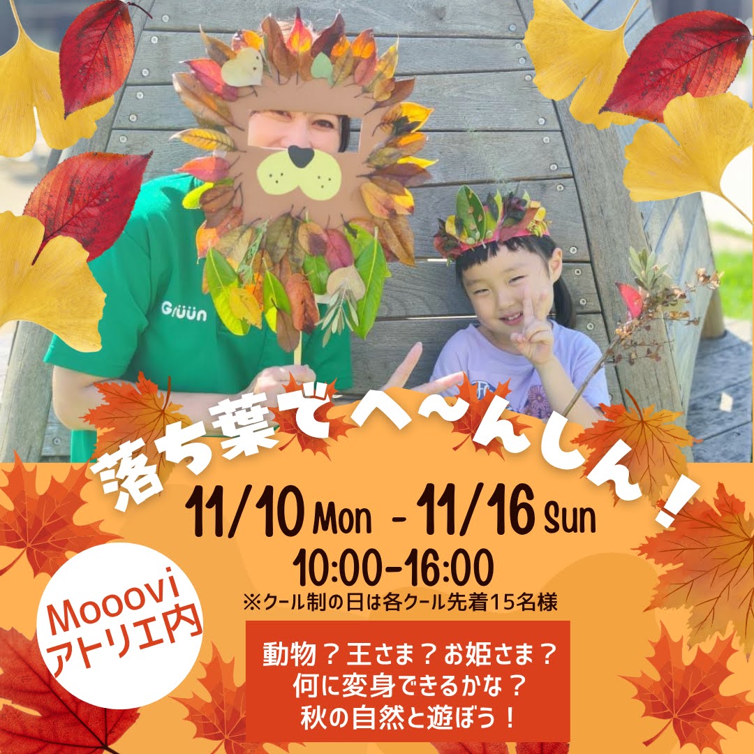 色とりどりの落ち葉でお面やかんむりを作ってみませんか?👑🐻🦁🧚森の動物たちやお姫様になりきって秋を楽しもう!🙌